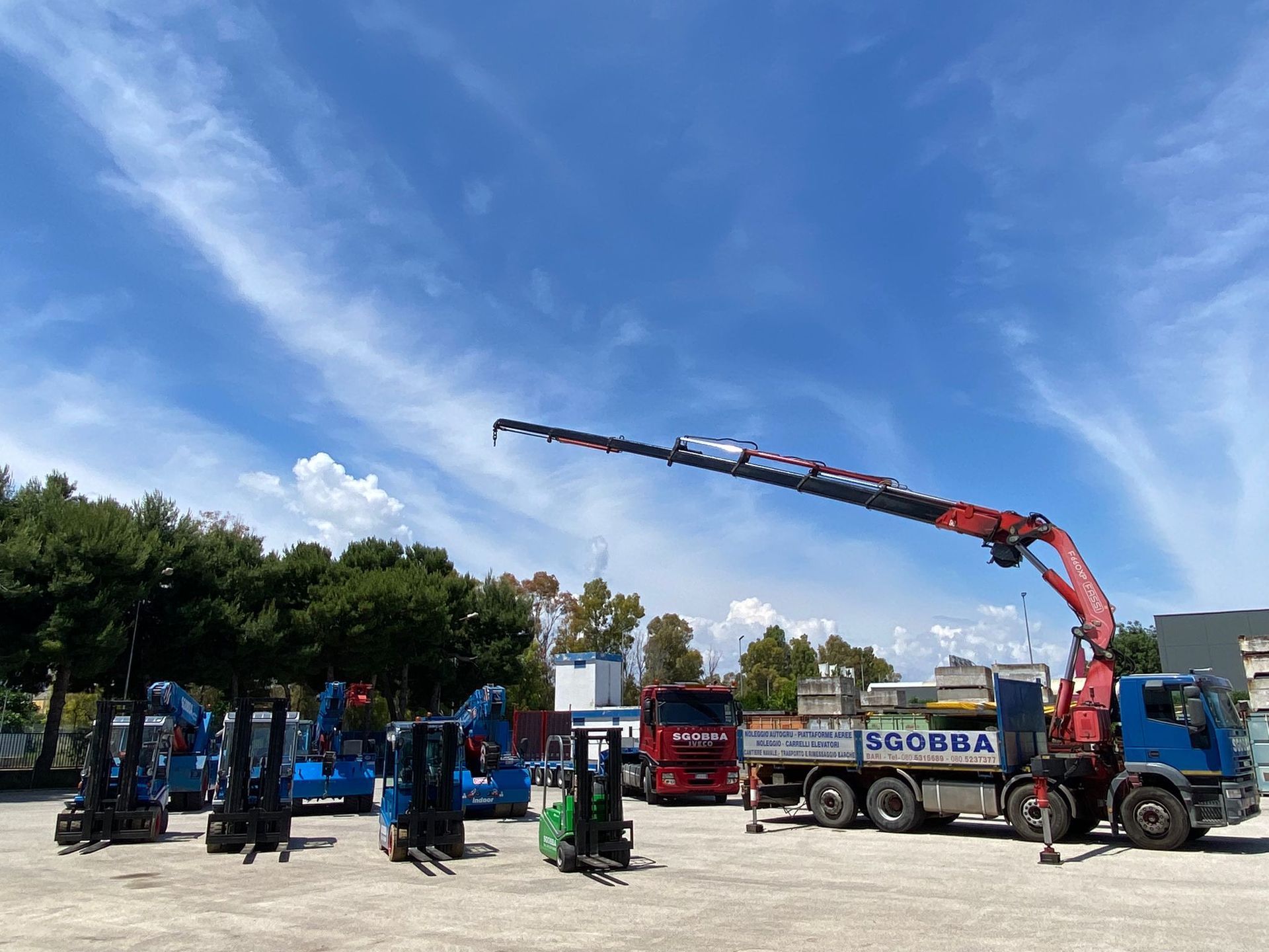 Da oltre 60 anni Pietro Sgobba e Figli assiste privati e imprese di Modugno e della provincia di Bari con un parco mezzi a noleggio all’avanguardia. Abbiamo attrezzature progettate per la movimentazione e il sollevamento di merci e macchinari pesanti, anche imbarcazioni, che affidiamo a tecnici e manovratori qualificati per interventi sempre attenti e rispettosi delle normative di sicurezza.